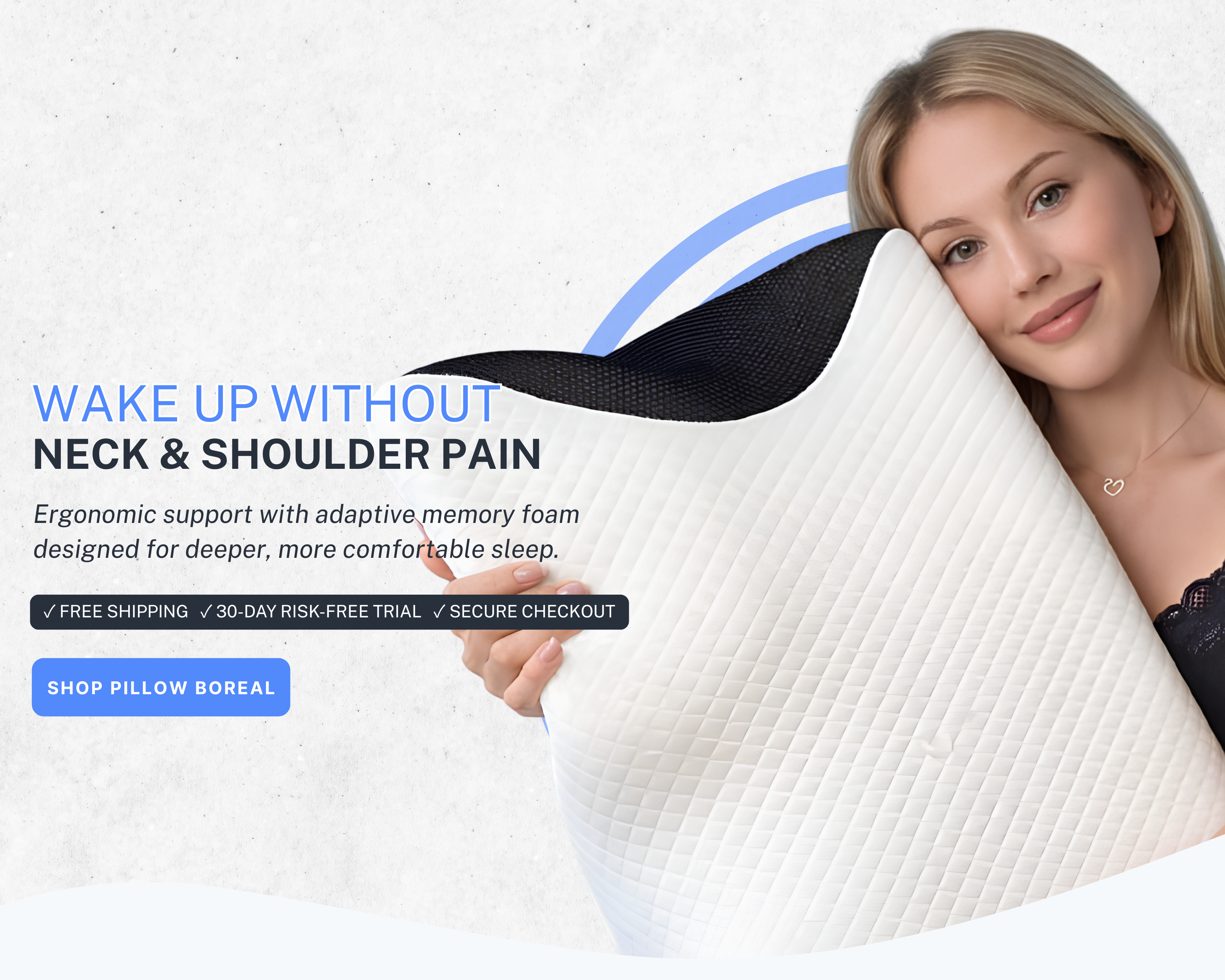 Pillow Boreal was designed to solve that. With an ergonomic contoured shape and adaptive memory foam, it supports your neck and shoulders in their natural position — helping you stay comfortable whether you sleep on your side, back, or stomach.